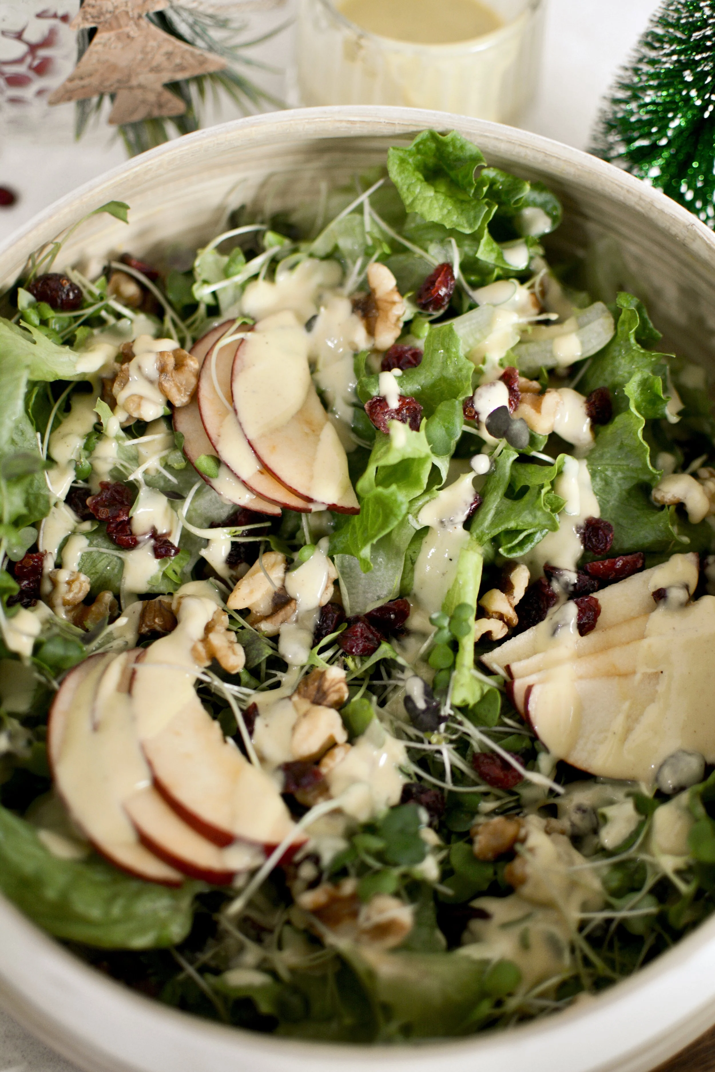 This vibrant Festive Side Salad combines crisp nuts, juicy apple slices, and sweet dried cranberries, all drizzled with a creamy, tangy Tahini Dijon dressing for a perfect balance of flavors. It’s a colorful, refreshing addition to any holiday or special meal!