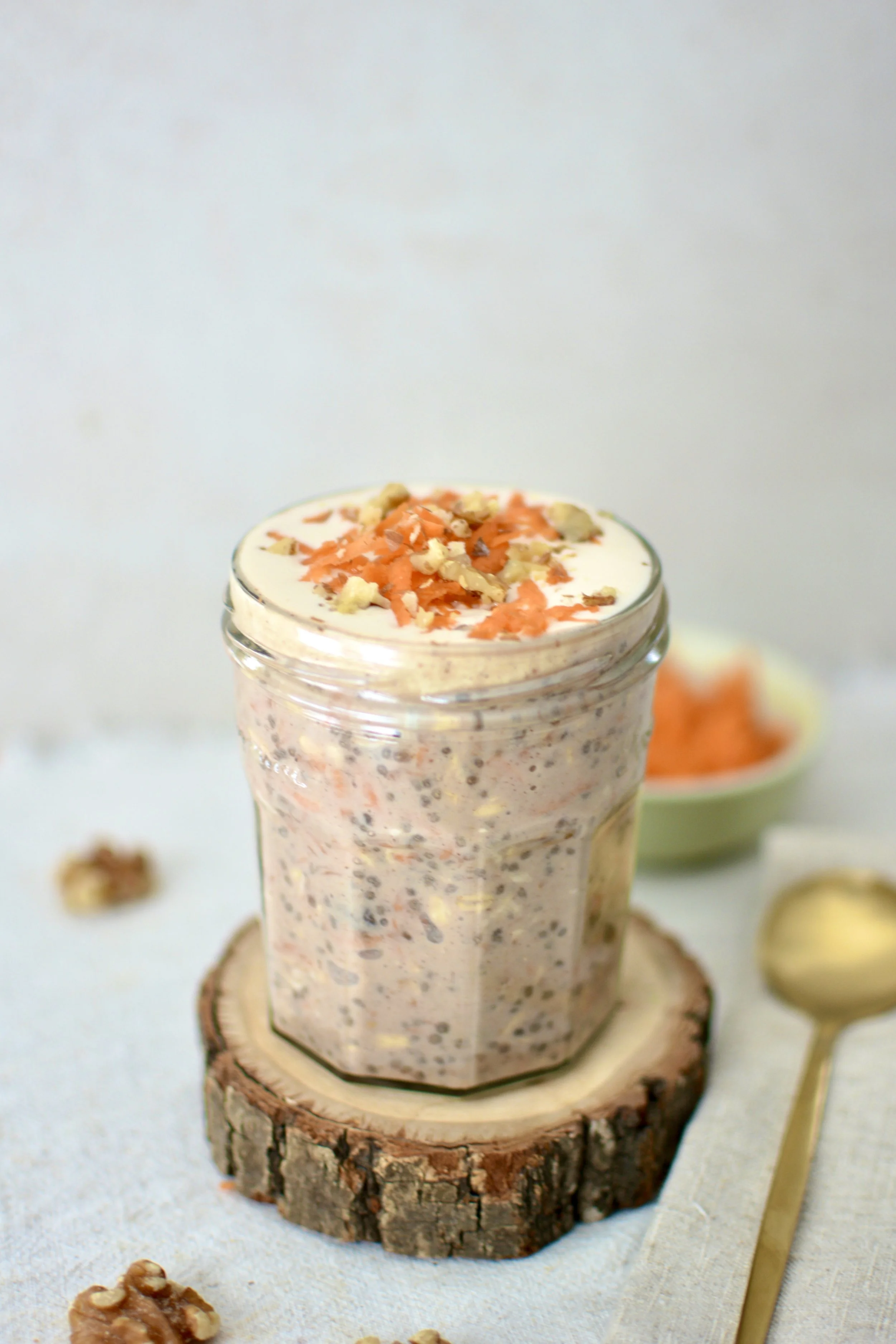 Ce gruau de la veille façon gâteau aux carottes combine le plaisir d’un dessert avec les bienfaits d’un déjeuner nourrissant. Riche en protéines végétales et en fibres, naturellement sans produits laitiers, il offre une texture crémeuse et satisfaisante qui soutient l’énergie toute la matinée. Le parfait mélange gourmand-santé pour bien commencer la journée !
