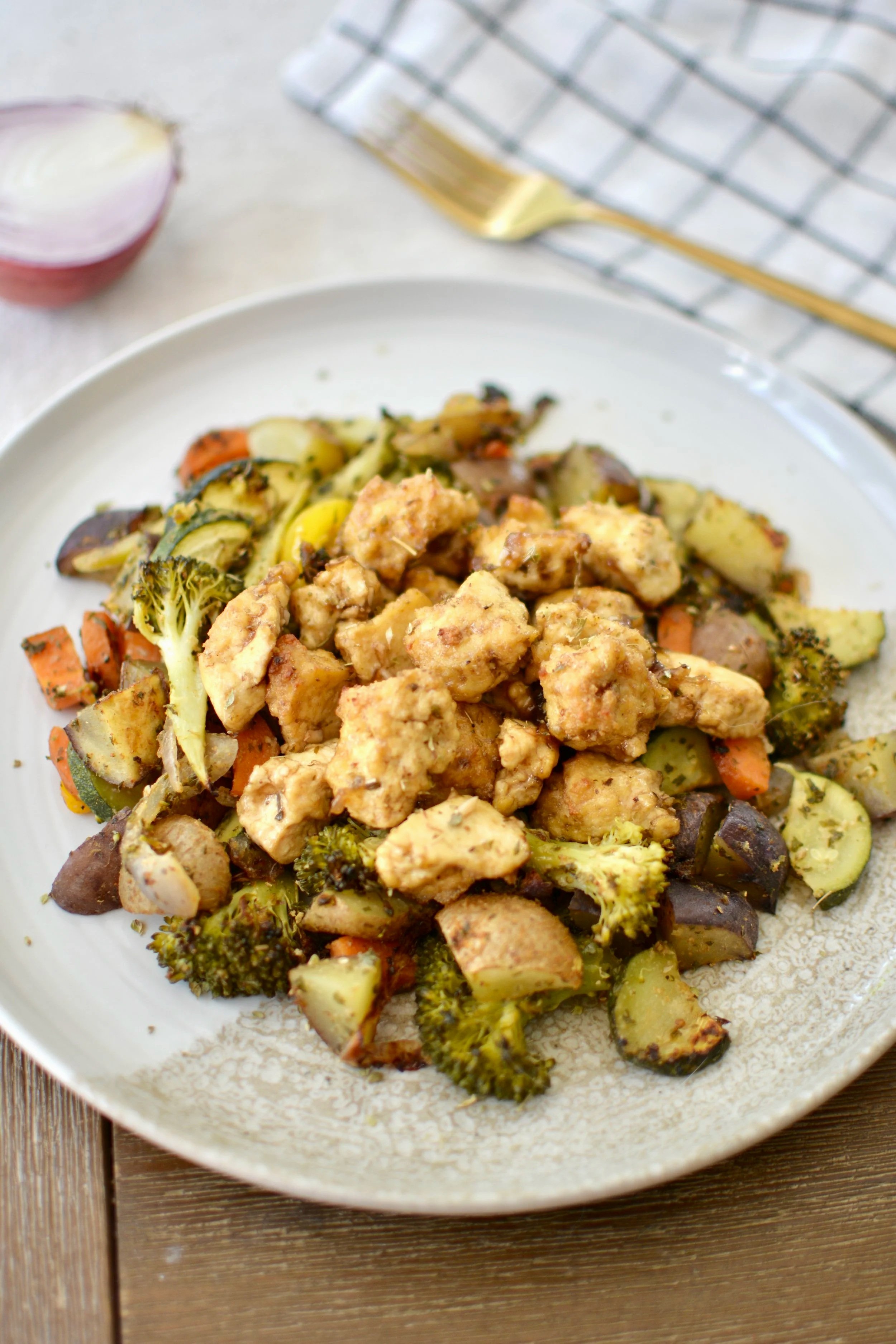 Packed with Mediterranean flavor and effortless to make, this Greek Style Veggie Tofu Sheet Pan is your new go-to for a healthy, colorful, nutrititous and satisfying one-pan meal!