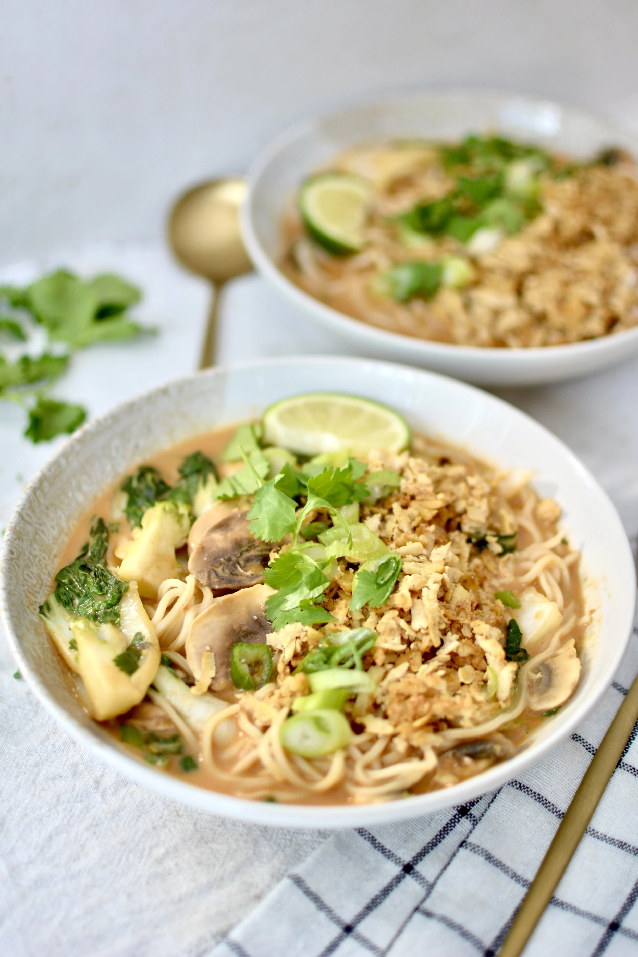 Soupe ramen au miso et à l’arachide avec tofu croustillant